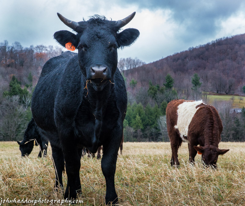 Maple Wind Farm has moved some of their young beef cattle to the meadows around School Street. This Angus was a little skeptic of my camera…