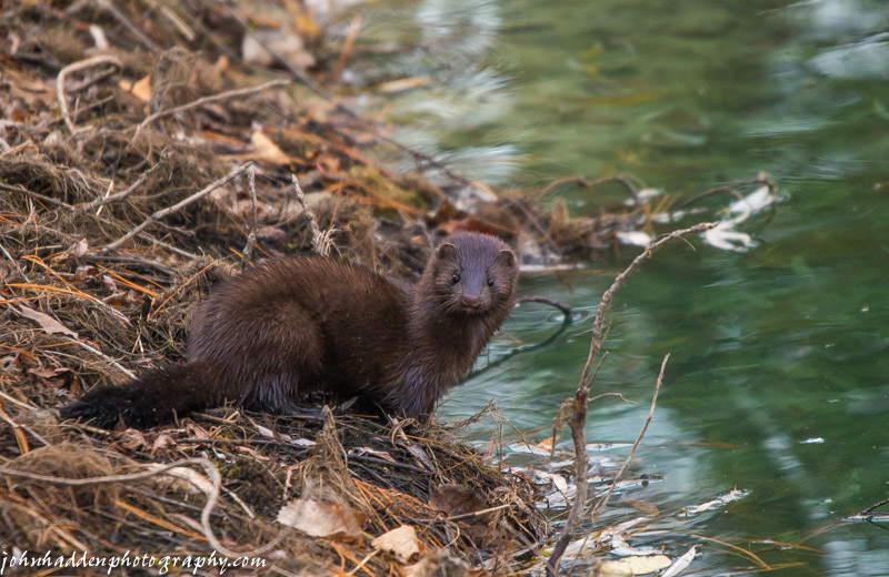 Here’s a different view of the mink who visited our pond the other morning. He was quite an active critter hardly stopping to pose for the camera!