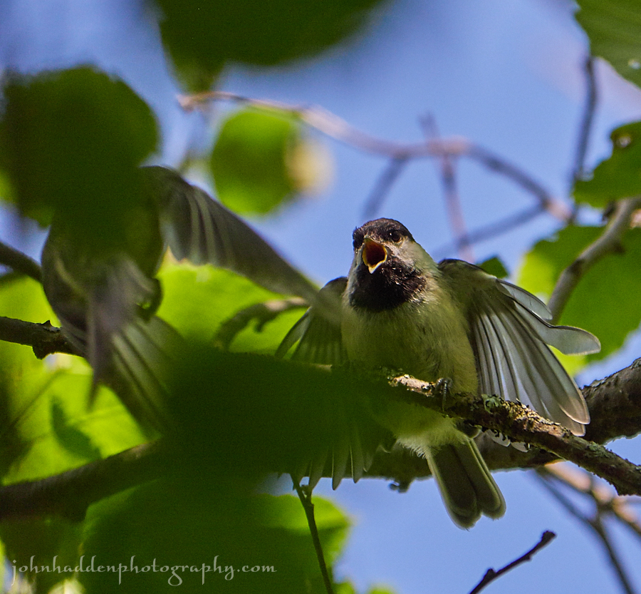 We visited Waterbury Center State Park the other day to enjoy some time on the water. While walking the little nature trail along the shore, I heard a ruckus of chickadees in the trees and noticed several fledglings hopping about in the branches. It was tough getting a clear shot of the action as, chickadees being chickadees, they were not staying in one place for very long. I managed to grab this shot of a fledgling as its parent arrived with food. Panasonic GX8, Lumix 100-300mm lens @ 300mm, ISO 1000, f.5.6, 1/1300″ exposure. |