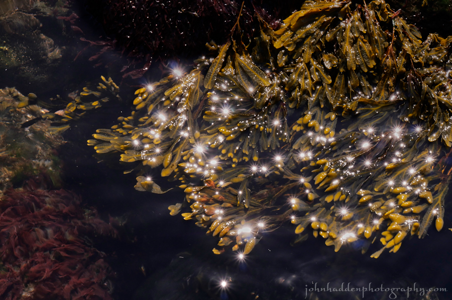 We travelled to Maine over the weekend to take in a little bit of ocean. While exploring the rocks and tide pools of Fort Foster Park, I snapped these shots of sunlight glinting off the water and rockweed. A relatively slow shutter speed and tight aperture create the wonderful starbursts and light squiggles on the water.