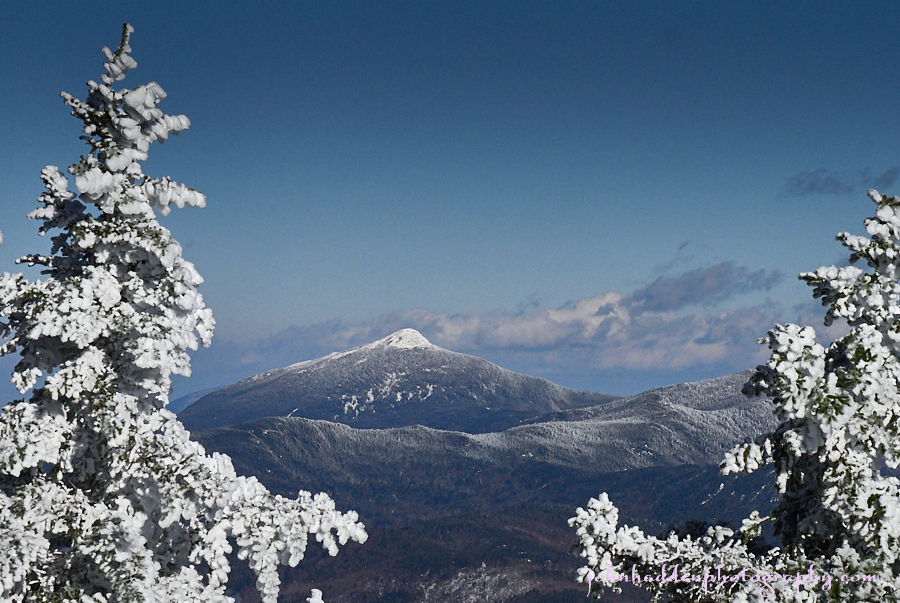 Yesterday’s bluebird conditions made for a lovely portrait of Camel’s Hump from the porch of the Stark’s Nest at the top of Mad River Glen’s Single Chair.